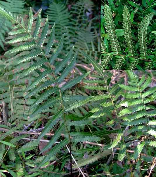 多年生草本,高80~150厘米。根茎长而横走,顶部密生棕色披针形鳞片。叶远生;叶柄长30~60厘米,褐色,鳞片稀少,被毛或无毛;1回羽状复叶,叶片倒披针形,长60~100厘米,宽15~30厘米,先端有急细的顶片,下部羽片稍缩短,亚革质,羽片13~20对,线形,长8~15厘米,宽10~18毫米,先端长渐尖。羽状浅裂至中裂,裂片宽2~3毫米,具尖,全缘或有微锯齿,基部上向的裂片常稍长,顶羽片长8~15厘米,宽1.2~1.5厘米;叶脉羽状分离,中肋及叶下各脉偶或被毛,仅基部一对侧脉联结并延伸至膜质的弯缺处。孢子囊群大,圆形,着生于叶下侧脉上而近于边缘,囊群盖圆肾形。孢子期6~12月。