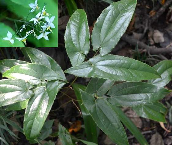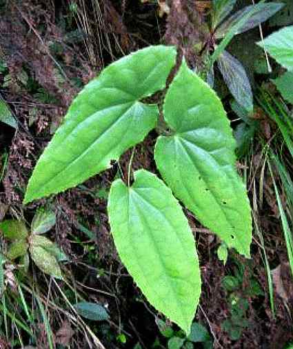 ②心叶淫羊藿(又名:小叶淫羊藿)叶片为圆心形,先端微尖。其他与淫羊藿同。