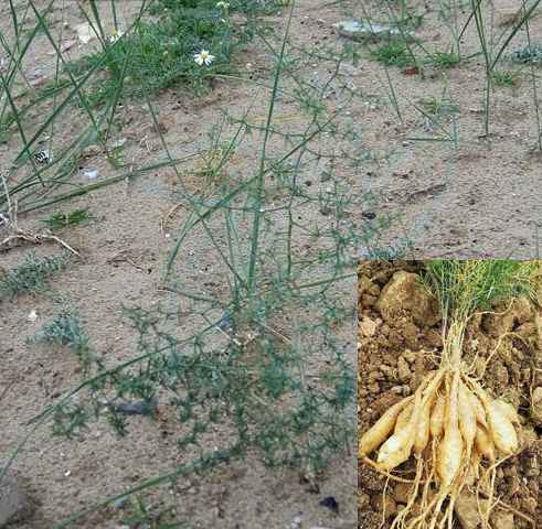 多年些灌木状草本,高60厘米,有多数长圆柱状块根,簇生,长10~15厘米,棕褐色。茎丛生,直立或稍倾斜,多分枝,老枝灰白色,幼枝绿色。叶为鳞片状,膜质。叶状枝簇生,长短不等,线形,先端锐尖。花单生或成对生于叶腋,花被6枚,黄绿色,花梗短,关节位于中部。浆果球形,橘红色。花期5~6月。果期8~9月。秋季采挖带根全草,晒干。