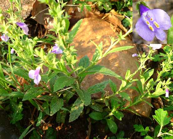 茎直立,高12~42厘米,全体被有细长软毛。叶片线状长圆形或长圆形,长3~7厘米,宽5~12毫米,边缘具不规则锯齿。总状花序顶生,萼钟状,裂片5,裂部稍长于筛部或与之相等;花冠唇形,淡紫色,长为花萼的一倍,上唇短,2浅裂,白色,下唇较大而长,淡紫色,3裂,中间的裂片较两侧裂片约短1/2,喉部具2突起,上有白色软毛及黄色斑点。蒴果田球形,包于萼筒内;种子多数,细小。花期4~5月。开花结果时采收,多为鲜用。