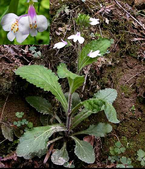一年生草本,高6~20厘米,秃净或稍被毛。叶大都基生,倒卵状矩圆形,长2~5厘米,先端钝,基部狭,下延,边缘波状或有锯齿。花茎单生或数个聚生,直立,通常无叶;花散生、互生;苞片披针形,长1.5~2毫米;萼绿色,长约7毫米,分裂至中部以下为5枚矩圆形的裂片;花冠浅蓝色,长约10毫米,上唇卵形,渐尖,下唇宽约8毫米,喉部有黄色斑块,侧面裂片较中央为宽;雄蕊4,两两成对;花柱2裂。蒴果长约3毫米。花期9月。