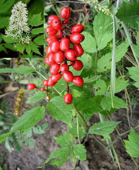 多年生草本,高50~70厘米。根茎块状,须根多数,粗短,黑褐色。茎绿色,直立,有棱,疏被短毛。叶大型,2~3回3出复叶,互生,叶柄被毛;小叶片卵圆形或卵圆状披针形,长5~7厘米,3裂,边缘具锐锯齿,上面绿色,下面灰绿色,被白色毛。总状花序或短穗状花序顶生,花序梗被毛;苞片狭披针形;萼片4,花瓣状,倒卵形,白色;退化雄蕊匙形;雄蕊多数,花丝细瘦;心皮1枚,子房1室,胚珠多数,柱头扁平。浆果紫黑色,长椭圆形或球形。种子扁圆形,棕色,光滑。花期5~6月。果期6~8月。夏、秋采收。