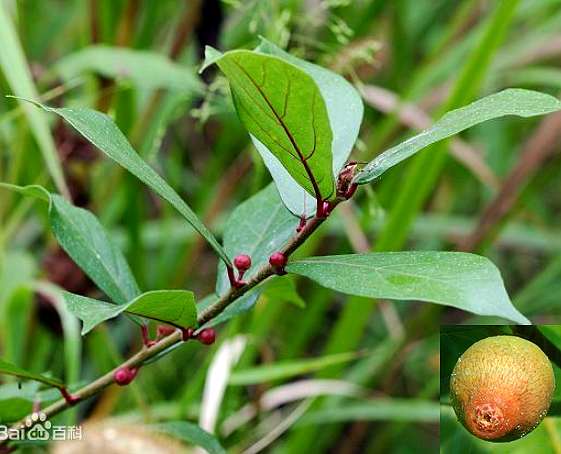 落叶小灌木。高1~2米。小枝及叶柄幼时被白色短柔毛,后无毛,常呈红紫色。单叶互生;变异甚大,小捷琴形或倒卵形,长4~10厘米,宽1.5~4.5厘米,基部圆形或阔楔形,先端突尖,中部常多少收缩而成窄腰形,两面无毛,有时下面被短柔毛;柄长4~8毫米。花序托单生或成对腋生,有短梗,卵圆形或梨形,热时紫红色,直径10毫米,顶端有脐状凸起;基部有苞片3;雄花和瘿花同生于一花序托内;雌花生在另一花序托内,花被4,花柱侧生。花期6~7月(广东)。根:全年可采,叶:6~10月采收。