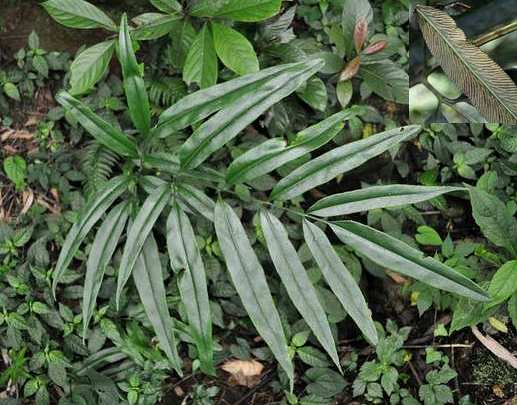 多年生草本,高80~100厘米。根状茎长而横走,被淡褐色鳞片,叶疏生,叶柄长50~60厘米,稻秆色,除基部外无毛,背部有沟;叶片卵圆形,长达50厘米,宽25~30厘米,一般为1次羽状复叶,但下部羽片常为2回羽状复叶;羽片可达5对,线状长椭圆形,长达20厘米,宽2厘米左右,先端长渐尖,基部有短柄,楔形,多少下延,边缘有微锯齿;叶纸质,无毛,叶脉在近羽轴处形成网眼,其他概为平行脉。孢子囊群沿叶脉着生,不具囊群盖。
