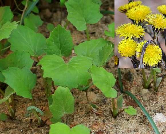 多年生草本,高10~25厘米。基生叶广心脏形或卵形,长7~15厘米,宽8~10厘米,先端钝,边缘呈波状疏锯齿,锯齿先端往往带红色。基部心形成圆形,质较厚,上面平滑,暗绿色,下面密生白色毛;掌状网脉,主脉5~9条;叶柄长8~20厘米,半圆形;近基部的叶脉和叶柄带红色,并有毛茸。花茎长5~10厘米,具毛茸,小叶10余片,互生,叶片长椭圆形至三角形。头状花序顶生;总苞片1~2层,苞片20~30,质薄,呈椭圆形,具毛茸;舌状花在周围一轮,鲜黄色,单性,花冠先端凹,雌蕊1,子房下位,花柱长,柱头2裂;筒状花两性,先端5裂,裂片披针状,雄蕊5,花药连合,雌蕊1,花柱细长,柱头球状。瘦果长椭圆形,具纵棱,冠毛淡黄色。花期2~3月。果期4月。10月下旬至12月下旬在花未出土时采挖,摘取花蕾,去净花梗及泥土,阴干。