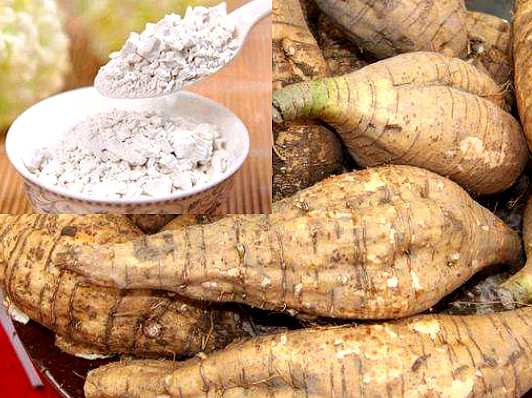 【备考】《本草衍义》:“?、鼎之间,冬月取生葛,以水中 揉出粉,澄成垛,先煎汤使沸,后擘成块下汤中,良久,色如 胶,其体甚韧,以蜜汤中拌食之。擦少生姜尤佳。大治中热 酒渴病,多食行小便,亦能使人利。病酒及渴者,得之甚良。”
