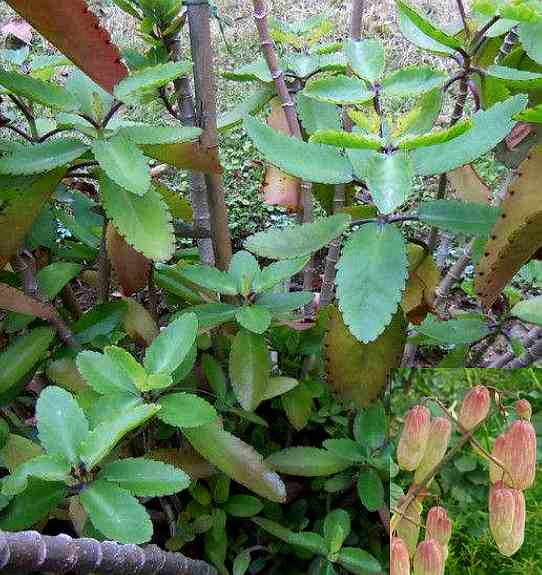 ⑥治跌打损伤吐血:落地生根鲜叶七片。捣烂绞汁,调酒、亦砂糖,炖温服。