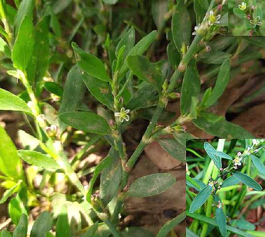 一年生草本,高15~50厘米。茎匍匐或斜上,基部分枝甚多,具明显的节及纵沟纹;幼枝上微有棱角。叶互生;叶柄短,约2~3毫米,亦有近于无柄者;叶片披针形至椭圆形,长5~16毫米,宽1.5~5毫米,先端钝或尖,基部楔形,全缘,绿色,两面无毛;托鞘膜质,抱茎,下部绿色,上部透明无色,具明显脉纹,其上之多数平行脉常伸出成丝状裂片。花6~10朵簇生于叶腋;花梗短;苞片及小苞片均为白色透明膜质;花被绿色,5深裂,具白色边缘,结果后,边缘变为粉红色;雄蕊通常8枚,花丝短;子房长方形,花柱短,柱头3枚。瘦果包围于宿存花被内,仅顶端小部分外露,卵形,具3棱,长2~3毫米,黑褐色,具细纹及小点。花期6~8月。果期9~10月。芒种至小暑间,茎叶生长茂盛时采收。割取地上部分,晒干。