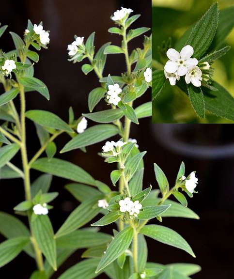 ①《唐本草》:“紫草所在皆有。苗似兰香,茎赤,节青,花紫白色而实白。”
