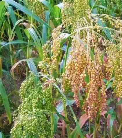 ④《纲目》:“黍乃稷之粘者,亦有赤、白、黄、黑数种,其苗色亦然。郭义恭《广志》有赤黍、白黍、黄黍、大黑黍、牛黍、燕颔、马革、驴皮、稻尾诸名,俱以三月种者为上时,五月即熟;四月种者为中时,七月即熟;五月种者为下时,八月乃熟。白者亚于糯,赤者最粘,可蒸食,俱可作。”