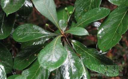 常绿乔木,高达30米。小枝细长,幼时有茸毛或细毛,以后逐渐脱落。叶革质,阔披针形或倒卵形,长4~8厘米。宽2~5厘米,先端突尖,基部楔形,上面光滑,下面有灰色或褐色茸毛,沿主脉及侧脉处尤为显著。聚伞花序腋生,花形小,色绿;花被盘状,裂片6,先端尖形。浆果卵圆形,黑色,长1.3厘米;果梗有细毛,顶端膨大。果期9~10月。