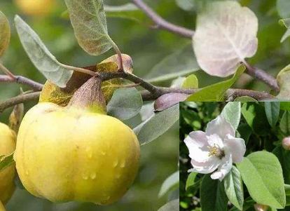 灌木或小乔木,高2.5~8米。芽小,有短柔毛,被有鳞片。枝多而丛生,小枝有绒毛,稍扭转。叶阔卵形至长圆形,长5~10厘米,先端尖,基部圆形或近心形,全缘,上面老时光滑,暗绿色,下面密生绒毛;叶柄长1~1.8厘米,具绒毛。花与叶同时开放于嫩枝顶端,花径4~6厘米;萼片5,全缘,外曲,有绒毛;花瓣5,白色或淡红色,倒卵形;雄蕊20;子房下位,5室,花柱5,离生,下部有短柔毛。梨果,梨状或苹果状,黄色,芳香,外被绒毛,径约7厘米,内含多数种子。花期5月。果期10月。