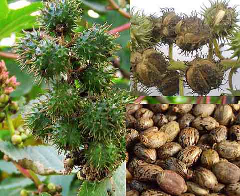【化学成份】蓖麻油的脂肪酸组成主为顺蓖麻酸约89%,其他有棕榈酸、硬脂酸、亚油酸、亚麻酸、二羟基硬脂酸。甘油酯的组成为三蓖麻酸酯68.2%、二蓖麻酸酯28.0%,一蓖麻酸酯2.9%及非蓖麻酸酯0.9%。灰分中含多量Ca、Fe、Si,其次为Al、Cu、Mg以及少量Mn、Ti、Ni、Zn。
