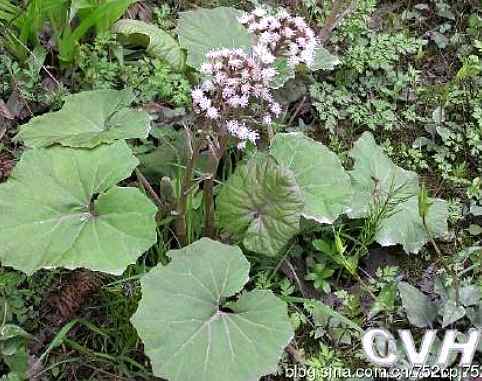 多年生草本。根茎短粗,周围抽生横走的分枝,多少被白色茸毛或绵毛。叶基生,心形或肾形,于花后出现,长2.8~8.6厘米,宽12~15厘米,下面灰绿色,有蛛丝状毛,边缘有重复锯齿;叶柄长达23厘米,初时表面有毛。花雌雄异株;花茎从根茎部抽出,茎上互生鳞片状大苞片,有平形脉;头状花序排列成伞房状;雌花白色,雄花黄白色,均有冠毛。瘦果线形,有5~10棱。花期4~5月。夏、秋季采挖根基,鲜用或晒干。