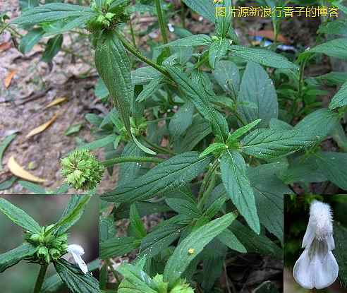 一年生草本,高约80厘米。全株有绒毛。茎四棱形,多分枝。叶对生;卵状披针形,长3~5厘米,边缘有粗齿。花白色,轮生于叶腋内;花冠管藏于萼内,肢2唇形,上唇短,直立,内陷,被长柔毛,下唇3裂;雄蕊4,上举;花落后留下很多残存的花萼,形如蜂窝。小坚果卵形,钝头。夏、秋采收。