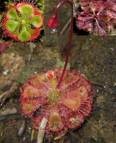 【药材】干燥全草,叶片倒卵状匙形,黄褐色,菲薄,边缘密生红色腺毛,托叶流苏状。全部叶片重叠挤压,呈铜钱状或形状不规则的扁块,直径约15~24毫米,厚约5~8毫米不等。底部棕褐色,有残存黑褐色、线形的根;边缘红色、毡状,摸之疏松;顶面枯黄色,中央残存1~3条花茎的基部;花茎纤细,黄褐色,很少带有花朵。气微,味淡。以朵大、边缘红色、无泥屑杂质者为佳。