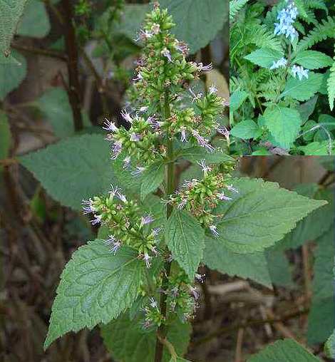 多年生草本,高60~80厘米。茎直立,四方形,分枝,稍被毛。叶对生,纸质,揉之有黄色液汁;卵形至卵状椭圆形。长3~9厘米,宽2~5厘米,先端短尖,基部阔楔形,边缘具粗锯齿,上面被稀疏的短细毛,下面近无毛,有红褐色的腺点;具柄。花细小,淡紫色,集成聚伞花序再排成腋生圆锥花序;萼钟状,有5齿,2唇形,结果时增大,外面有红褐色腺点和疏短毛;花冠2唇形,上唇短,有裂片4,裂片宽而反折,下唇作船形,全缘,比上唇长;雄蕊4,2长2短,伸出于花冠筒外。果实由4个小坚果组成,藏于萼的基部。花期5~10月。夏、秋采收。