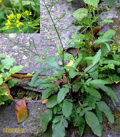 此外,同属植物印度?菜与?菜极相似,主要区别在于植物体较为坚挺,茎下部的叶羽裂较多。常与?菜同等使用。