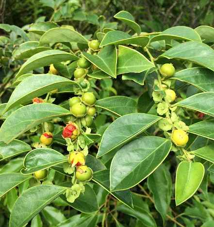 ⑤治咽喉肿痛:鲜算盘子叶一至二两,煎汤调蜜频咽服。(《泉州木草》)