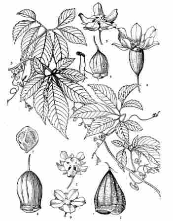多年生草质、攀援藤本。块茎扁球形盆状。茎细长,具棱,卷须与叶对生。叶互生,具柄;叶片叉指状,小叶7~9,披针形,中间小叶最大,长6~10厘米,宽1.5~3厘米,边缘有锯齿。花小,黄绿色,单性,异株,排成圆锥花序,腋生;雄花花萼5深裂;花冠5深裂,雄蕊5,分离;雌花较小,花柱极短,柱头2裂。蒴果椭圆形,顶端平截,3瓣裂。种子多数,狭卵形,压扁。花期5~7月。全年可采,而以秋季藤蔓枯萎前采挖者佳,切片,晒干。