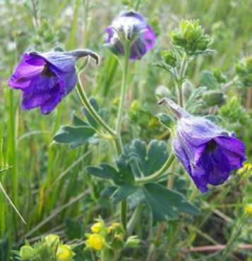 多年生草本,高35~65厘米。茎具疏分枝。基生叶和茎下部叶具长柄;叶片圆,醑形,长2.2~6厘米,宽4~8厘米,3全裂,裂片细裂,小裂片条形,宽0.6~2.5毫米。总状花序具3~15花,轴和花梗具反曲的微柔毛;花左右对称;小苞片条形或钻形;萼片5,花瓣状,蓝色或紫蓝色,长1.5~1.8厘米,上面1片有距,先端常微凹;花瓣2,较小,有距,距突伸于萼距内;退化雄蕊2,瓣片宽倒卵形,微凹,有黄色髯毛;雄蕊多数;心皮3,离生。??果3个聚生。花期8~9月。果期9~10月。7~8月采收,漂洗,切段,晒干。