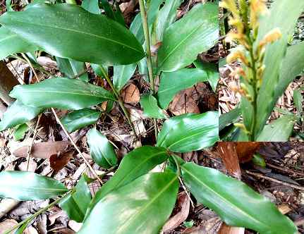 多年生常绿草本,高可达1米,全株有生姜气味。根茎横走,节上生有须根。嫩芽粉红色,秆直立。叶互生,深绿色,背面叶脉隆起。秆顶开白色小花,有红色斑点。蒴果,椭圆形,鲜红色,内有种子数个,揉之有生姜气味。花期夏季。果熟期冬季。