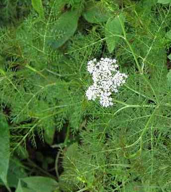 ③火藁本:形态与辽藁本相似,但根较粗大。叶为3~4回3出羽状细裂,裂片线形。无总苞或有1~2枚总苞,白色,披针形,比伞梗短,花药绛红色。果实油管在背棱上有1个,侧棱上有2个,接合面上2个。