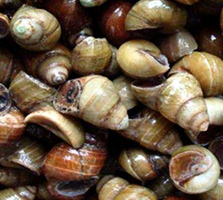 ②治黄疸吐血,病后身面俱黄,吐血成盆,诸药不效:螺十个,水漂去泥,捣烂露一夜,五更取清服二、三次。(《小山怪证方》)