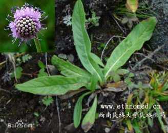 多年生草本,高达50厘米,全株被毛。根直,圆柱形,黑褐色。叶根出,匙形或条状匙形,全缘或1回羽状深裂,长5~10厘米,宽1.5~2厘米,先端圆钝,基部渐窄成叶柄。花茎由叶丛抽出,高10~35厘米,无叶;头状花序顶生;总苞片叶状,卵状长椭圆形;花白色至粉红色;萼齿刺毛伏,刺毛上密被银白色长柔毛;花冠2唇形,上唇短,2裂,下唇大,3裂。雄蕊4,稍伸出:于房下位,包于杯状具长毛的小总苞内。瘦果呈倒卵形,扁平,密被银白色的长柔毛。7~9月采根。洗净,切片,晒干。