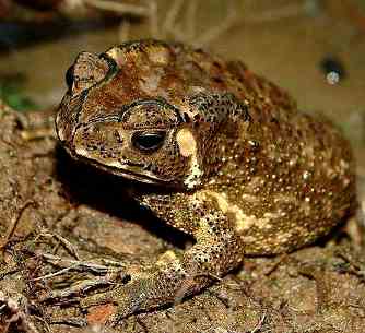②黑眶蟾蜍:体长约7~10厘米。背部有黄棕色而略具棕红色的斑纹,腹面色浅,在胸腹部具有不规则而较显著的灰色斑纹。雄性第1、2指基部内侧有黑色婚垫。