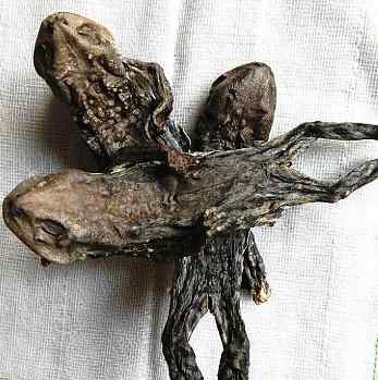 【药材】干蟾:全体拘挛抽皱,纵面有棱角,四足伸缩不一,表面灰绿色或绿棕色。除去内脏的,腹腔内面为灰黄色,可见到骨胳及皮膜。气微腥,味辛。以个大、身干、完整者为佳。