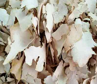 【药材】根茎竹节状,类圆柱形,表面皱缩,常残留有茎枯萎疤痕及未除尽的细长须根。商品多为不规则的薄片,大小不一,厚约至0.5mm,边缘不整齐,有的有棕黑色或灰黑色的外皮。切面黄白色或淡灰棕色,平坦,有粉性及不规则的黄色筋脉状维管束。质松,易折断。气微,味苦,微辛。