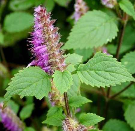 【药材】 茎呈方柱形,多分枝,长30-50cm,表面紫褐色;质脆。叶卷曲皱缩,展平后呈卵形或椭圆状披针形,长3-9cm,宽1-4cm,上面暗绿色,有疏生硬毛,下面淡绿以,散生多数亮黄色腺点;叶柄长0.5-3cm,有小硬毛。顶生假穗状花序,稍偏向一侧,花淡紫色。揉搓后有特异清香,味辛凉。以枝嫩、穗多、多香浓者为佳。