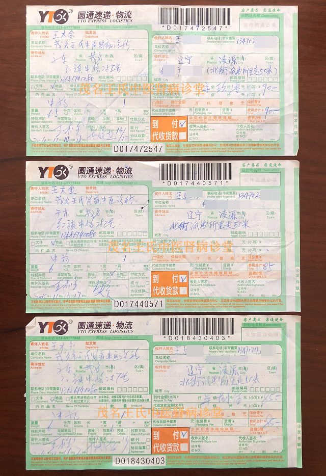 下面是患者当年邮药治疗快递单图: