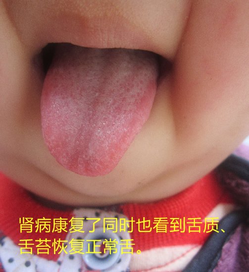 孩子肾病康复了同时也看到舌质、舌苔恢复正常舌。