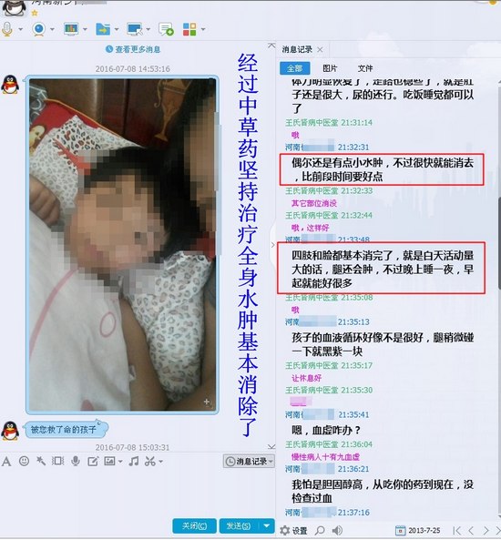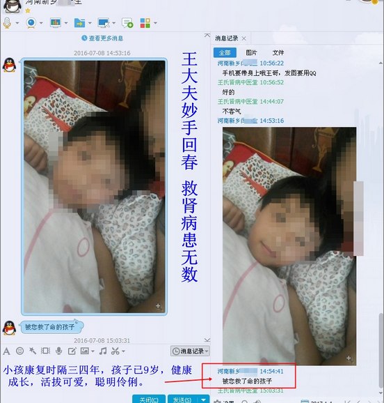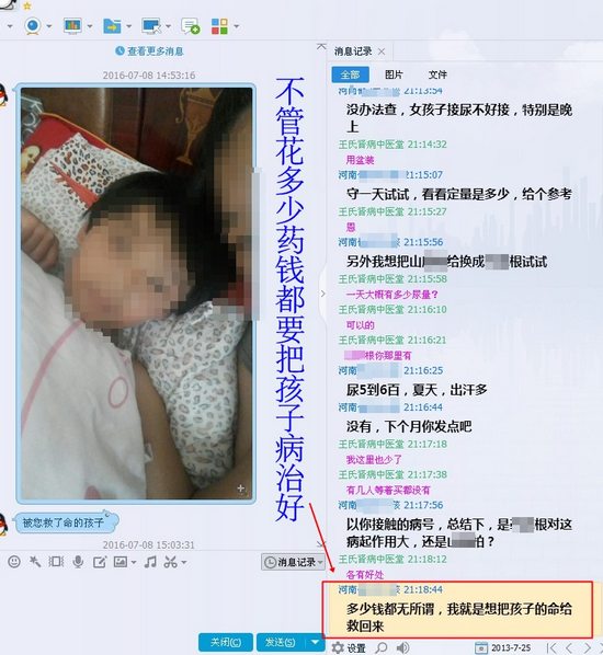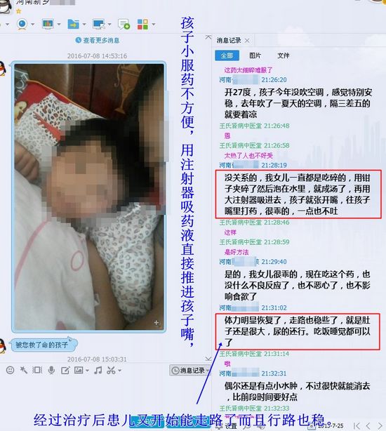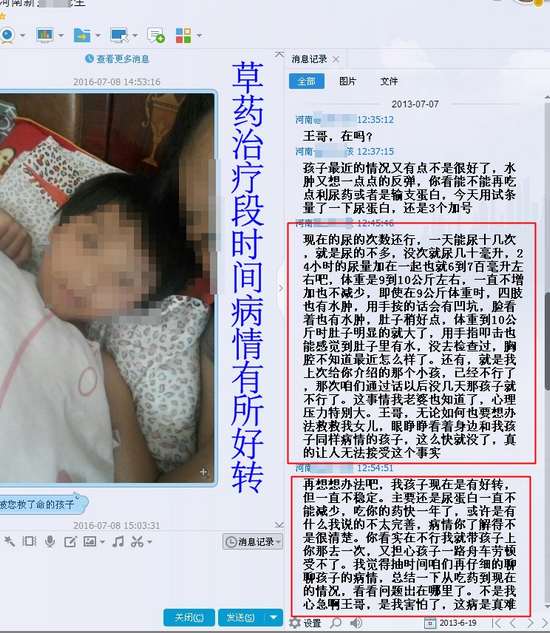 下面是王大夫与患儿父亲那时QQ部分聊天截图: