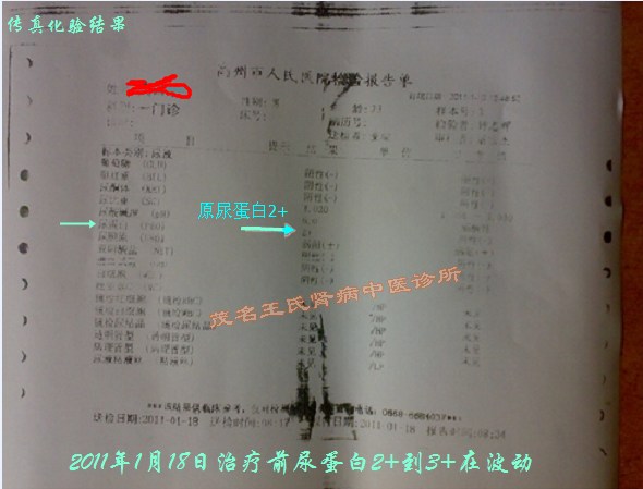当时在本地镇医院住院治疗,靠输液打针治疗了半个月时间,尿蛋白下降到(+),潜血正常,浮肿症状同时也消肿,医生说可以出院回家吃药了;回家还是按时吃医院开的中西药,又过了不到十天时间,尿量开始一天天减少,又出现眼睑浮肿,继续全身肿起来,病情又反弹了,医生说要住院,又检查,再又是天天打针,天天输液,三几天时间尿量又正常了,浮肿开始慢慢消,同时喝医院熬好的中药一起口服,一个星期浮肿再次消退,又办理出院,回家养病。俗话说,好景不长,过了还不到一个月时间病情再次反弹,浮肿症状再现,这回不回医院了,而是在当地找民间中医开药,在一位本地有名老中医吃中药粉治疗了三几个月,但是病情是时好时坏,中药粉也有些效果,浮肿控制住没有进一步严重了,化验尿蛋白+至++不定。最后又在一年时间里换过几个中医药治疗,治疗效果均不理想,尿蛋白时高时低,始终不见转阴,久久吃吃药就这样又过了一年半时间。