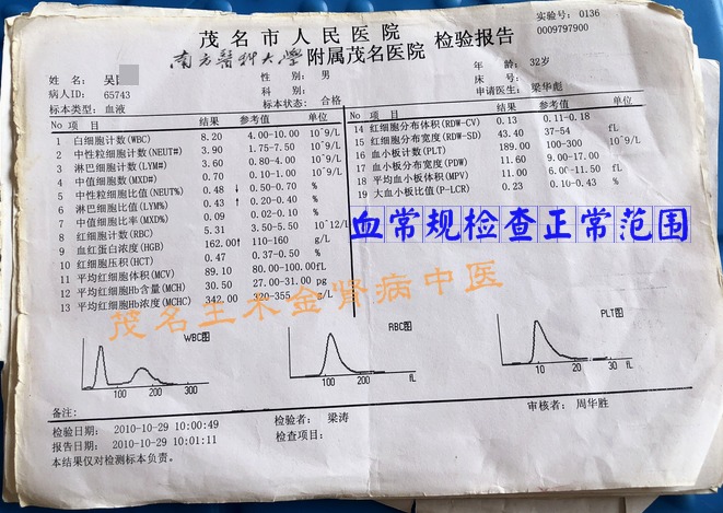 下面图是2010年10月患者最后一次检查尿留下来的报告图,时隔过了8年时间了,患者愈后到现在2018年底一直稳定无复发。
