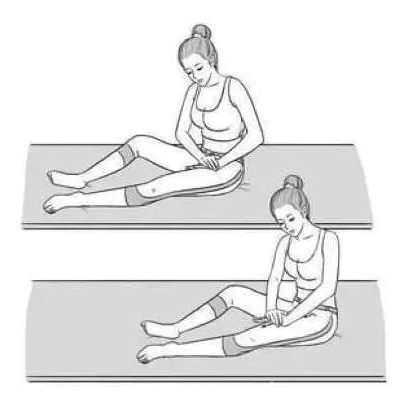 坐在床上,右腿向前伸直,左腿弯曲平放,双手交叠,压在大腿根部,沿着大腿内侧肝经的位置,稍用力向前推到膝关节的,反复推动,四五十遍,然后换另一只腿同样的手法。