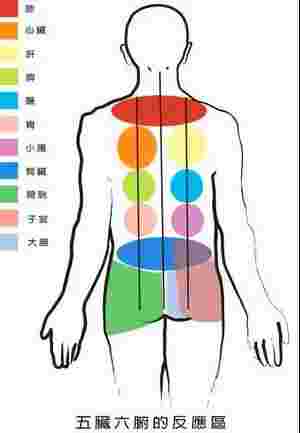 1、背部是以脊椎为中心的整个人体的全息缩影,是人体五脏六腑的最直接的反应区,人体的五脏六腑均可在背部找到相应的对应区,如背上部对应肺和心脏,背下部对应脾、胃、肝、胆,腰部对应肾、膀胱、大肠和小肠,背部健康与否,往往直接反映着脏腑是否正常运转。